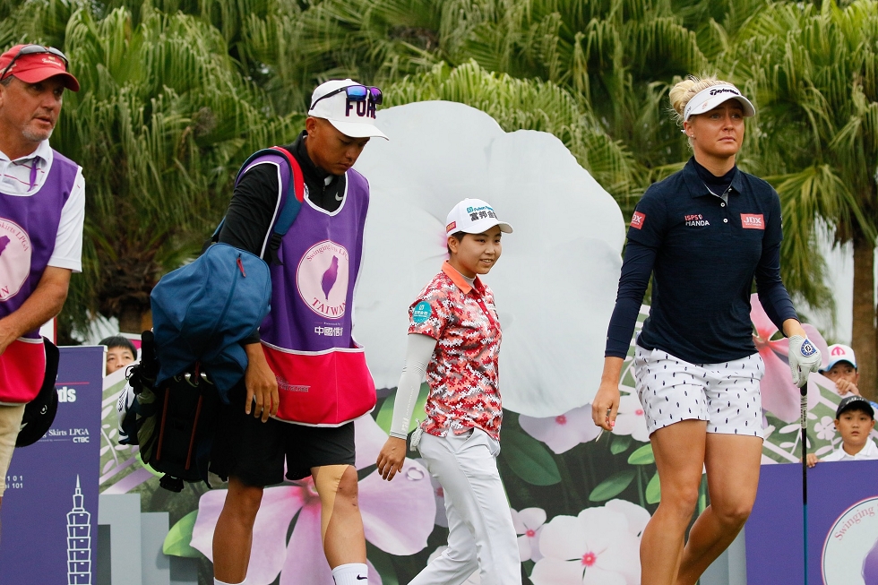 29歲的霍爾出道10年,向以球風凌厲著稱,知名度高,但多次屈居第二,這次是她在LPGA的第三勝。2015年,她在職業首年就來到美麗華獻技,並拿下第四名佳績,後續還在2017、2019重返美麗華,也都拿到不錯的成績單。圖為她在2019 台灣裙襬搖搖LPGA出賽的歷史畫面。