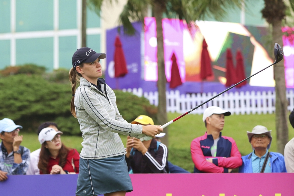 舒梅澤出身南卡羅萊納大學校隊,2019年升上LPGA首年即來到美麗華獻技,31歲的她,迄今仍在追尋LPGA首勝。圖為她在2019 台灣裙襬搖搖LPGA出賽的歷史畫面。