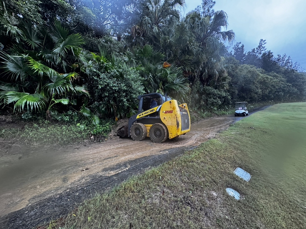 只是雨來得又大又急,導致部分果嶺及沙坑淹水、邊坡坍方、樹木傾倒。所幸球場的排水系統早在30年前建設時即相當完善,雨勢趨緩後迅速發揮功能,加上場務團隊全體同仁冒著風雨即時搶救,目前大部分災情已經修復,對您擊球的影響降到最低。歡迎您撥空再回來走走!(圖片為災情初期拍攝)